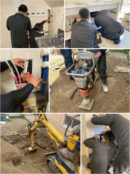 大規模な施設の給排水設備 、個人住宅の水漏れ、トイレつまり、下水切替、新築、リフォームまで業務はさまざまな建物のインフラを支える仕事です